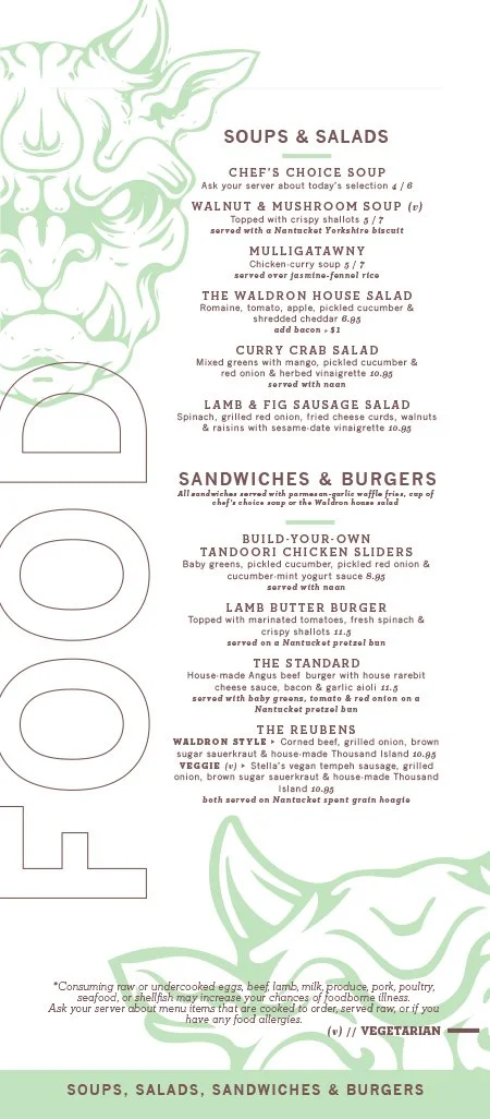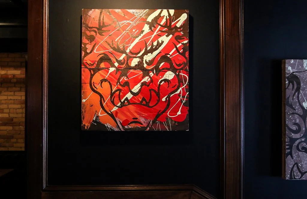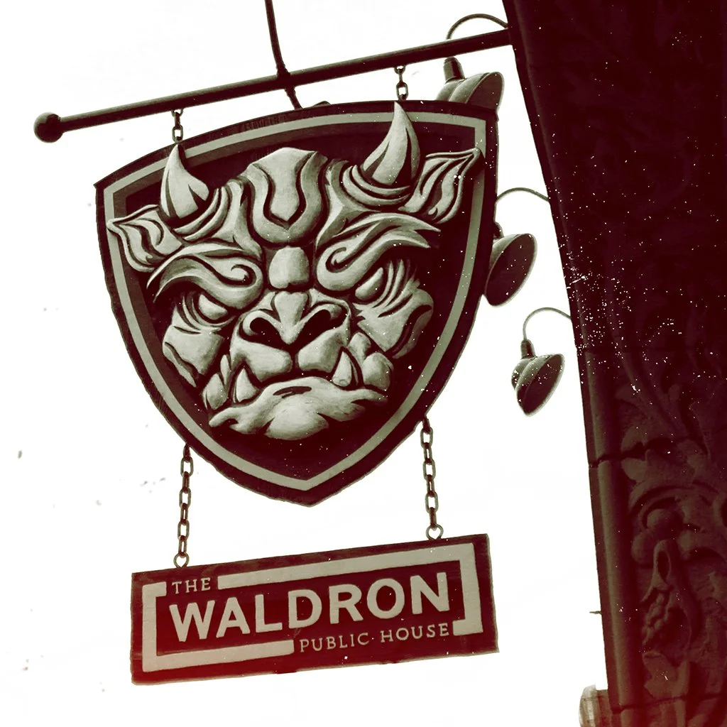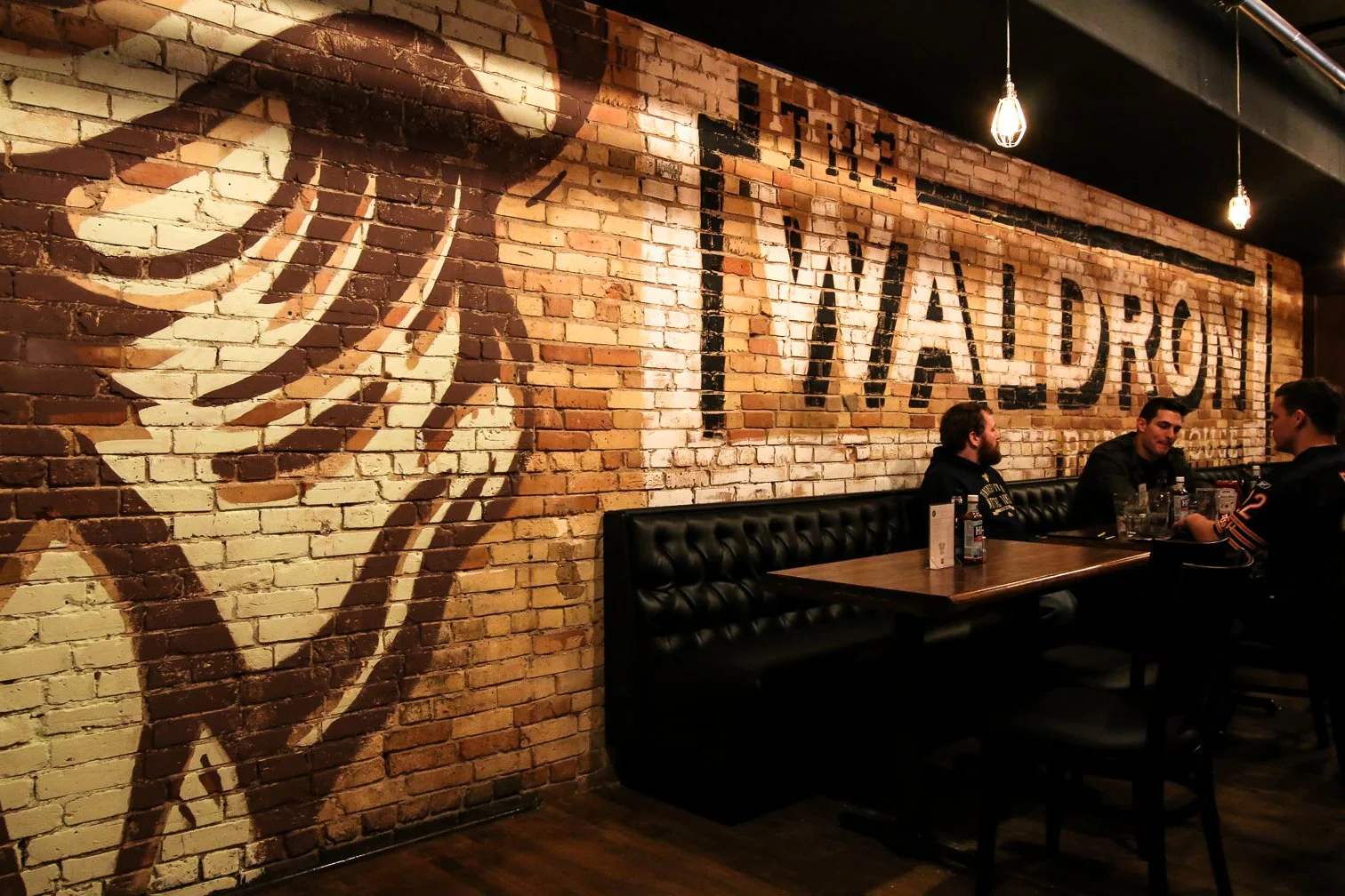 During my role as Creative Director for BarFly, the company decided to transition McFadden's, known for its lively nightlife, into "The Waldron," a venue designed to appeal to diners while honoring the building's historic roots. I led the entire rebranding effort, including designing all visual assets, overseeing interior design, painting several large-scale murals, as well as, original artwork for the space. Drawing inspiration from the building’s century-old gargoyles and English Commonwealth themes, I aimed to create a cohesive brand that bridges the building’s storied past with a fresh, modern identity.